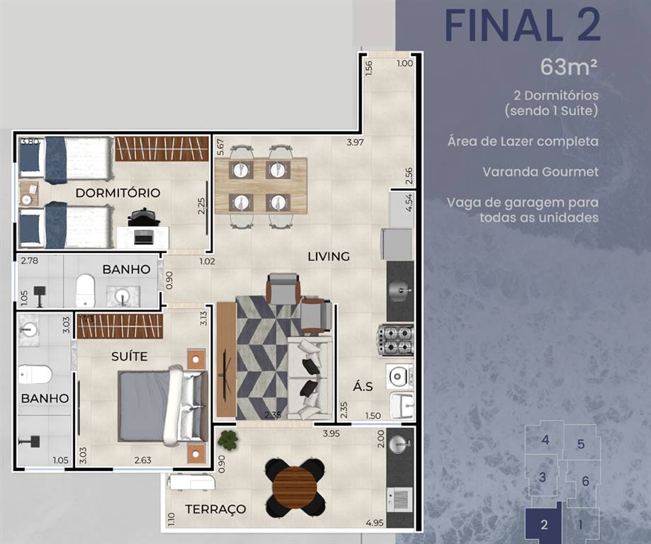 Área Útil63,71m²
